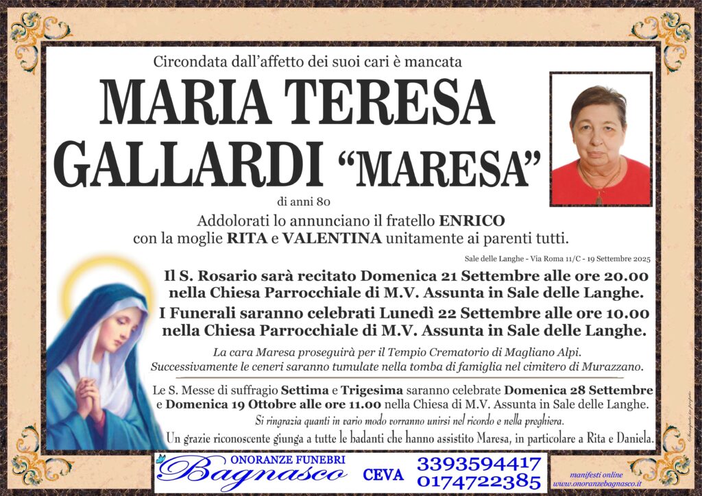 Partecipazione – Maria Teresa Gallardi “Maresa”